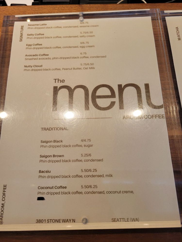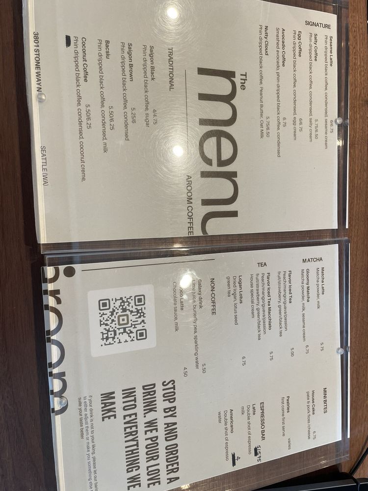 Aroom Coffee, a Vietnamese cafe located in Seattle, offers a variety of unique and delicious drinks. Customer reviews rave about their signature drinks such as the Bac Siu Vietnamese Latte and the Sesame Latte. The drinks are described as smooth, creamy, and full of flavor. The cafe itself is trendy and modern, with a vibrant atmosphere perfect for socializing or studying. The menu includes a range of Asian-inspired beverages, including the popular Egg Coffee. Despite the busy crowds, Aroom Coffee provides a welcoming environment with friendly service. The cafe's commitment to sustainability is evident through their use of compostable containers and plastic-free packaging. Overall, Aroom Coffee is a must-visit destination for coffee lovers seeking a hip and cool vibe combined with delicious drinks.
